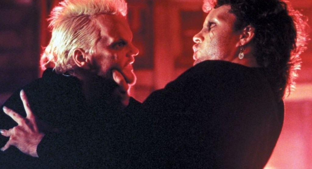 It seems weird to think of it now, but these stylistic changes made by Joel Schumacher to how vampires were portrayed where as well received by some horror fans at the time as the glittery vamps of Twilight, with the complaint being that they were too “girly” to be scary (gotta love the 80’s, eh), but time has made that statement seem as incorrect as it is awkward.