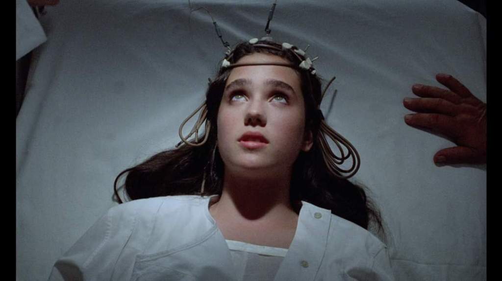 Having an impossibly young looking Jennifer Connelly play a sleepwalking, psychic child who can talk to bugs is literally the most normal thing the movie has to offer and it ups the ante almost with every scene that follows. Behold Donald Pleasance’s entomologist who bangs on in a Scottish brogue about how great insects are in the same hushed tones he usually reserves for describing Michael Myers; or his pet chimp, Inga who, (spoilers) in the event of his murder, finds a straight-razor in a public trash can (?) and goes on a quest to avenge his death; or that the killer’s identity is revealed to be both (more spoilers) the deformed, piranha-faced child of the school headmistress (Daria Nicolodi, finally playing an Argento villain) who has been murdering to protect her son while he pops out at night to slaughter girls and store their bodies in a corpse pit in his basement. And yet the film chooses not to lean into this unending stream of craziness, keeping the pace way too deliberate for a film that boasts a killer chimp.