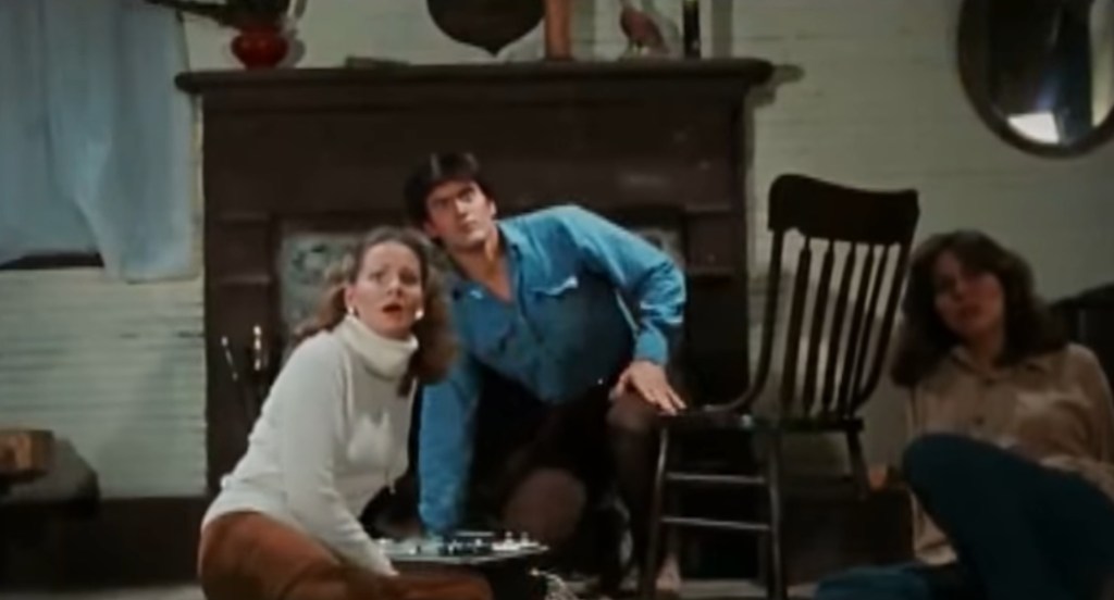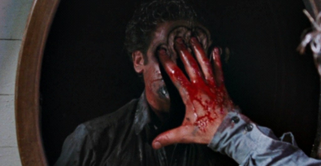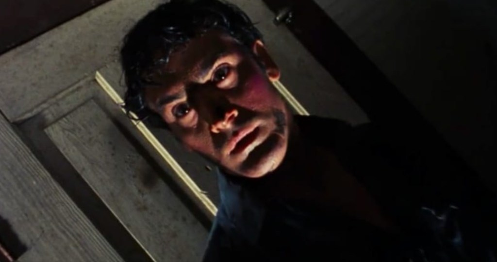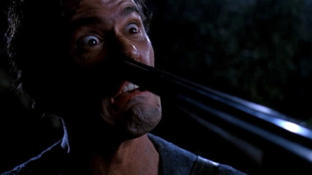 During a rare breather in Sam’s DIY masterpiece, Ash finds himself the last teen standing after all his friends have either possessed, mutilated or possessed and mutilated and while our terrified hero tries to get his bearings, the evil force lurking in the forest decides to fuck with him a little while.