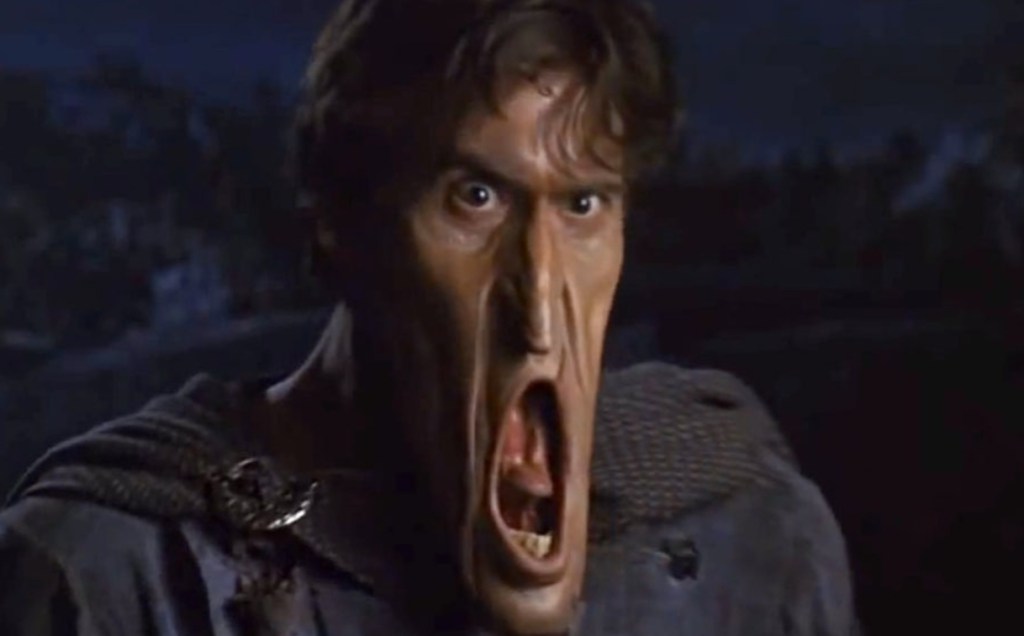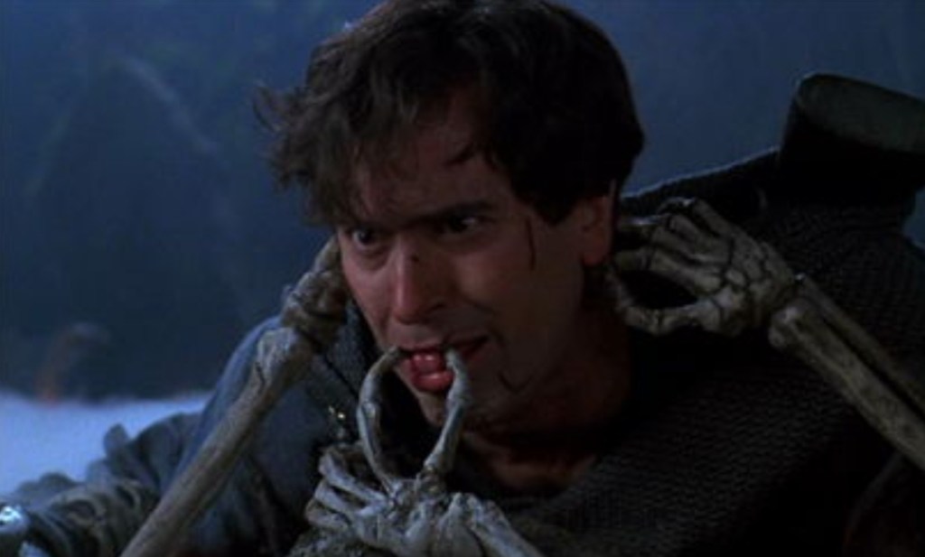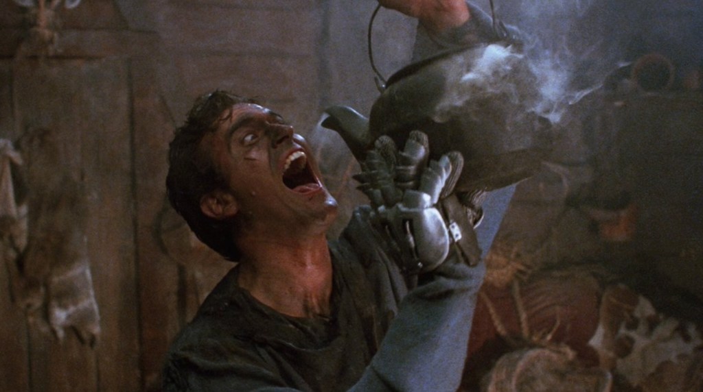 Quite possibly the most outright stupidest moment in the entire trilogy, it’s also an utterly fucking perfect example of Raimi pushing his comedy chops as far as he can while Campbell mugs it up magnificently.
