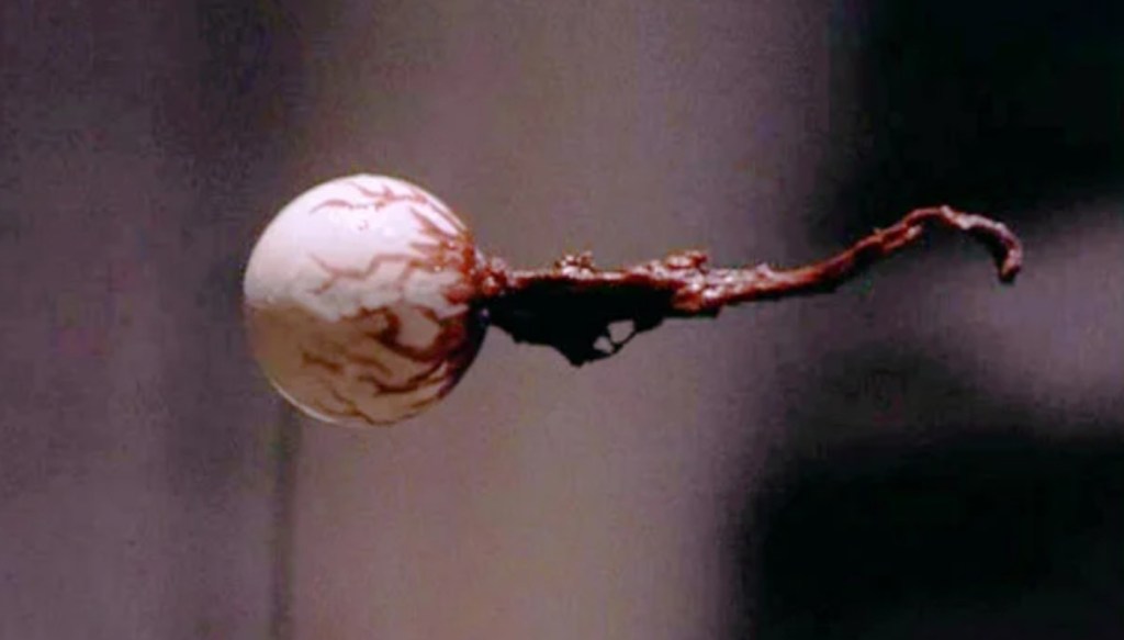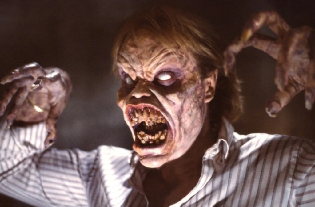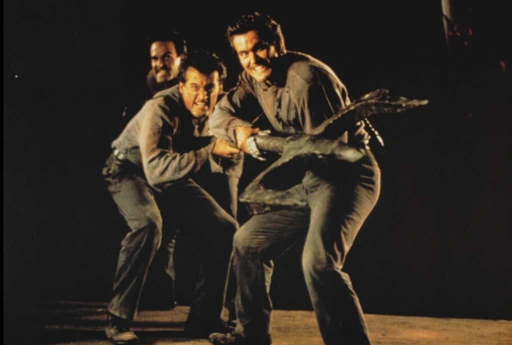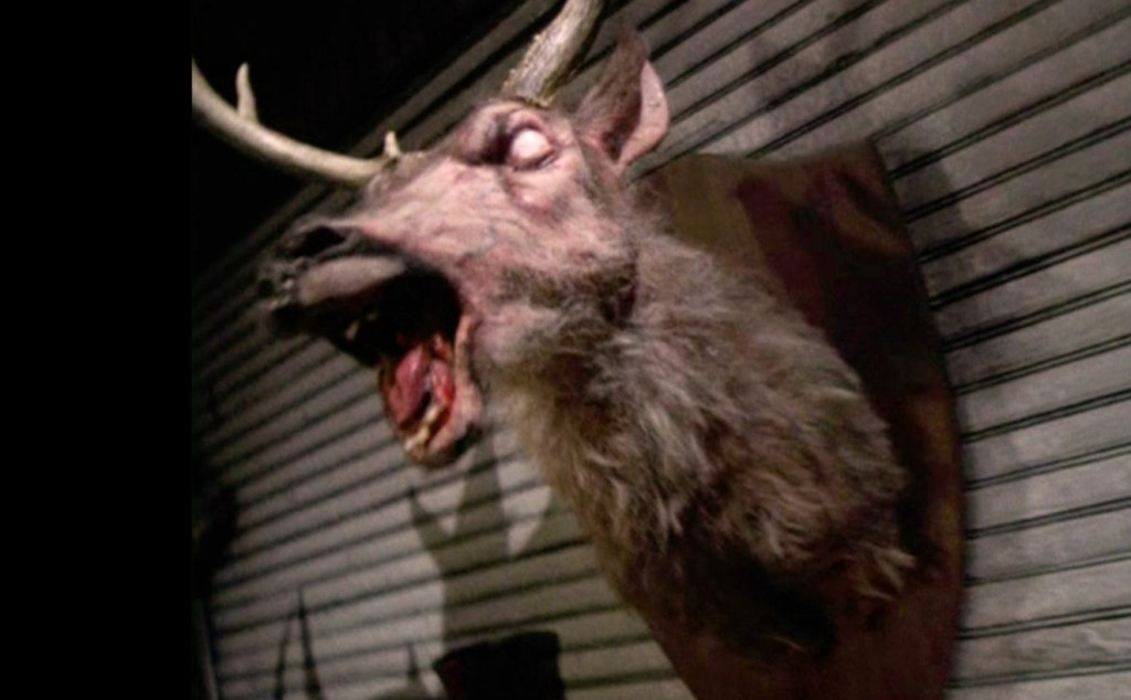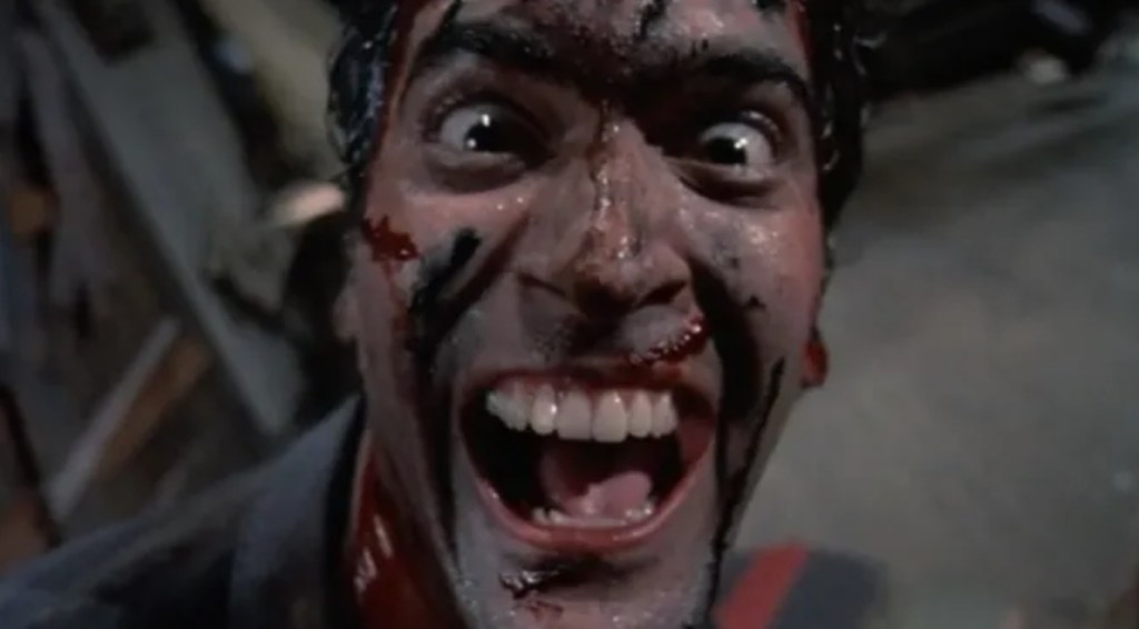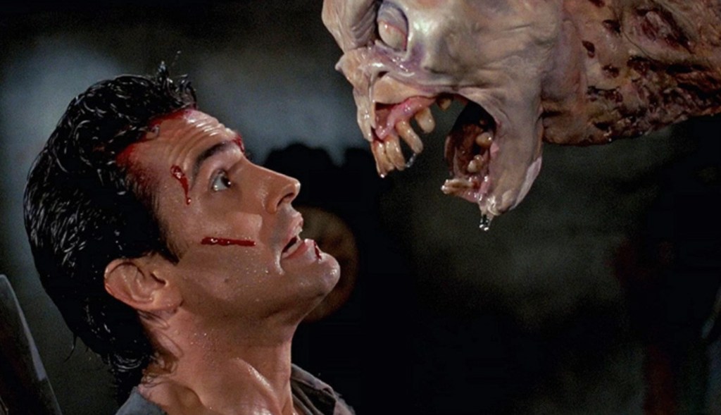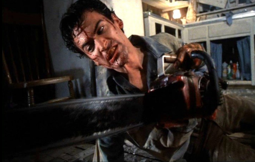 So let’s list ’em: there’s the bit where Bruce Campbell’s Ash is hurled through the forest by an evil force, the Deadite Linda’s dance routine, the laughing stag head, the self-inflicted severing of Ash’s possessed hand (“Who’s laughing now!”), the blood flood, the mutilation of Evil Ed, Henrietta’s transformation, the flying eyeball, the chainsaw montage (“Goovy!”) and many, many more moments too numerous to mention.