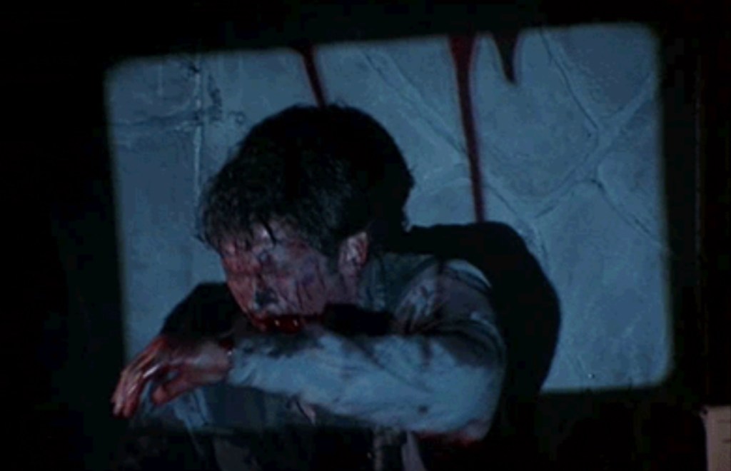 Some have lamented that Raimi never made more “straighter” horror flicks as the man obviously has a talent at staging some truly unnerving images and probably the best example of that is the very first assault of the Deadite possessed Cheryl. Everything thus far – the atmospheric opening, the creepy recording, Cheryl’s nasty instance of tree rape and the broken bridge – has been leading to this moment as everyone tries to settle down for the night after the day’s events. As Ash’s girlfriend, Linda, tries to guess cards with limited success, Cheryl suddenly jumps in, guessing everything right in a drugged, faraway tone that soon becomes vicious and she whirls round to reveal a bestial expression on her now-demonic face. From then on in it’s utter chaos as Cheryl levitates, spits out some cryptic threats and collapses into a heap on the floor – only to leap up, jab a pencil into Linda’s ankle with wince inducing force and throw the stunned men folk through various bits of furniture before finally being locked in the fruit cellar.