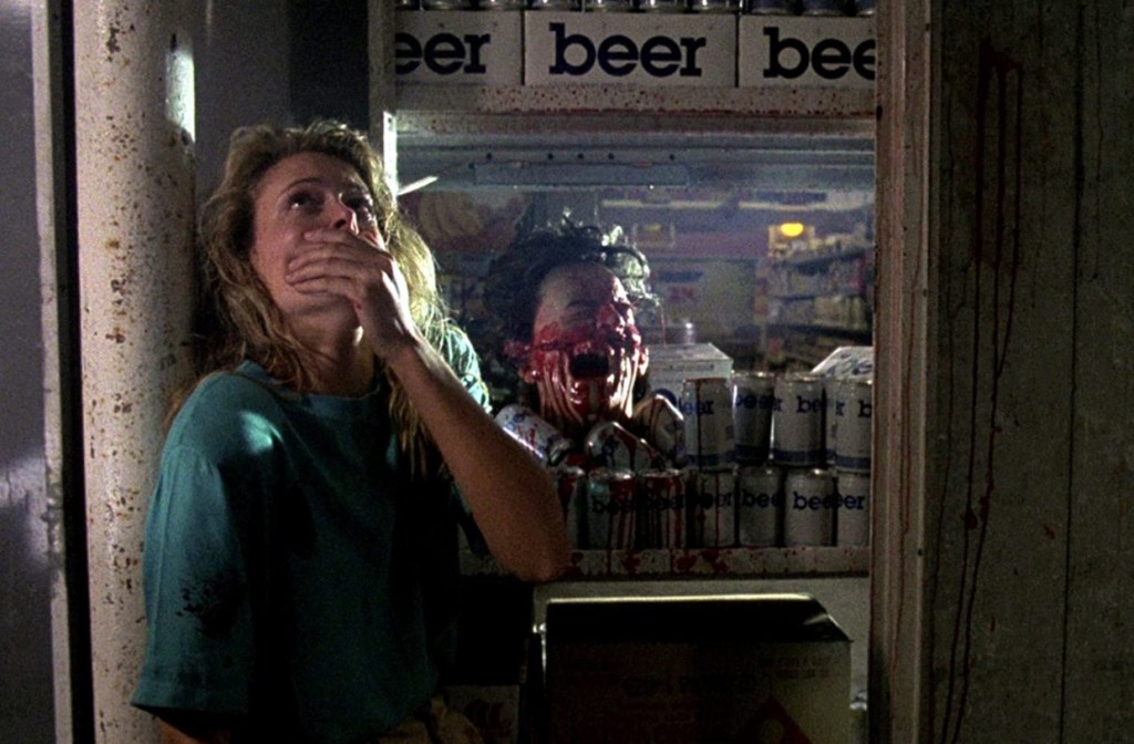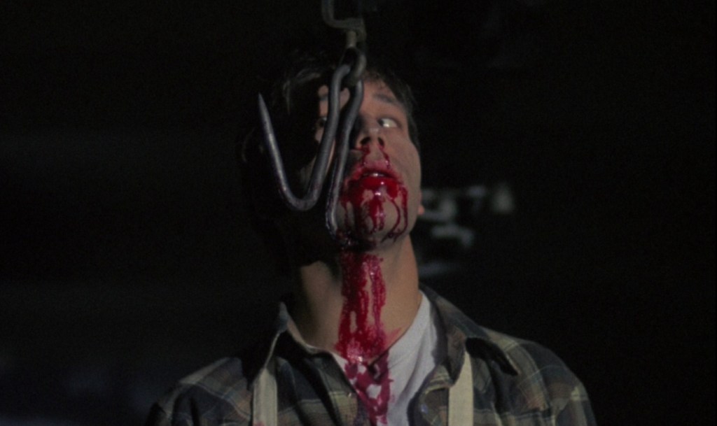 Intruder is something of an intriguing beast that’s racked up quite a modest following thanks to it’s quirky, Sam Raimi-lite nature and some truly boffo gore effects that makes the viewing of an uncut version not just advisable, but practically vital. Released when the 80’s run of the slasher genre had basically run it’s course, Intruder admittedly came late to a party that was long since past it’s prime, but despite lacking the polish of an early Friday The 13th, you can tell that the filmmakers are really trying hard to turn in something made with a little more imagination that your average example of your basic slice and dice. While the plot is standard fare with a location change of a strangely, TARDIS-like supermarket, if you could contain the energy and imagination of Sam Raimi’s The Evil Dead in a standard slasher pic, Intruder is what you’d get. Prioritizing incident over actual plot, the movie is full of neat little touches as Spiegel chooses to stuck his prowling camera all over the place in order to mask his minuscule budget with bursts of quirky, directorial flair and it’s here that the movie is mostly at it’s best when screwing with conventions.