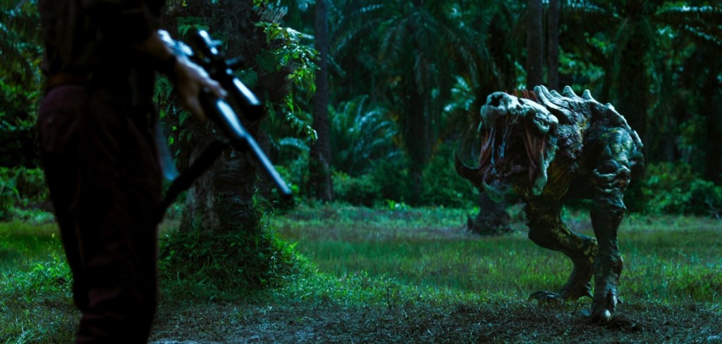 Big game hunter, Bill, is conveniently also head of a morals-free Bio Tech company and has unwisely been breeding genetically modified Graboids in order for millionaires to hunt them on his private island because why should Elon Musk and Jeff Bezos be the only rich dudes with insane pastimes? However, on the mainland, reserchers Dr Jasmine Welker and uber-slacker Jimmy figure out what their boss is up to and send for legendary Graboid killer, Burt Gummer who has finally renounced the human race (and their invasive governments, naturally) and is living like a grizzled, Robinson Crusoe-style hermit while wolfing down grubs on a beach in Papa New Guinea.