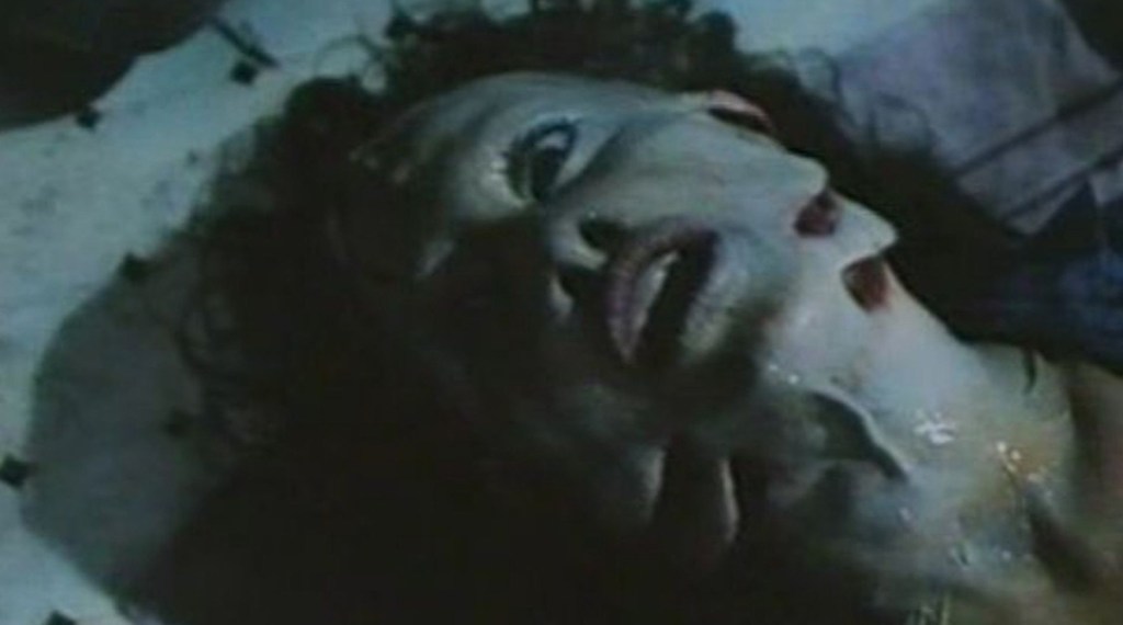 Most of the cast are chiefly defined by how weird/annoying their performances are with the vast majority, including David Allen Brookes’ rather rigid lead, falling into the latter category, hitting the usual horny and clueless stereotypes usually reserved for counsellors at Camp Crystal Lake. However, a couple of the cast react utterly appropriately for a movie about a human/octopus, black sheep twin living in his mother’s basement like an undulating incel, starting with Rod Steiger’s hideously hair-pieced, Dr Moreau wannabe who grabs his limited role with both hands and throttles it for all he’s worth. The sight of him screaming like a lunatic while getting hosed down with more slime than a decade of Nickelodeon Children’s Awards skits is worth the price of addition alone and while his evil plan definitely resists all forms of credulity, it’s always fun to see incredibly over qualified actor chew the scenery in stuff like this. The same goes for Planet Of The Apes’ Kim Hunter, whose entire role is to spout histrionic exposition exclusively from a hospital bed and was probably wrapped in a single day before the crew broke for lunch, but joining them is Amanda Pays, doing her usual shtick of channeling Joanna Lumley’s cut glass accent and abruptly ending her character arc by suddenly sprouting fish-like gills and noisily expiring on the living room carpet.