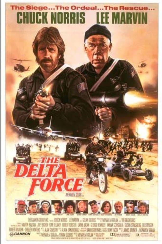 Say what you will about First Blood Part II’s bombastic attempts at catharsis in the wake of the Vietnam war, at least it never contained a scene where John Rambo used his sweat-sheened, all-American biceps to forcibly rip open a wormhole in time and travel back to 1971 to win the conflict all by his lonesome. While this also never happened in The Delta Force, the Cannon Group’s 1986’s team up between Chuck Norris and Lee Marvin, there’s a distinct feeling that the movie was trying to rewrite history after the harrowing, real life hijacking of TWA Flight 847. Subsequently, To say that The Delta Force’s grasp of global politics is tone deaf is probably an insult to anyone with a hearing disability, as it attempts to put a jingoistic reimagining on an act of global terrorism that was barely a year old. As a result, you may wonder who could be so callous to even consider such a project?
