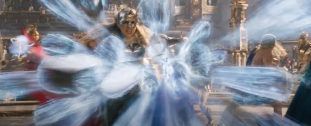 The big change here is still the fact that Natalie Portman’s Jane Foster has claimed Mjolnir and taken the mantle and powers of the Mighty Thor, something that has the original Odinson more than a little rattled. However, adding to things seems to be the fact that this new Thunder God not only has the powers that Thor 1.0 possesses, but shes able to get that scarred old hammer to do a few more tricks that we’ve never seen before – like send out a wave of ghost hammers to take out multiple foes at once.