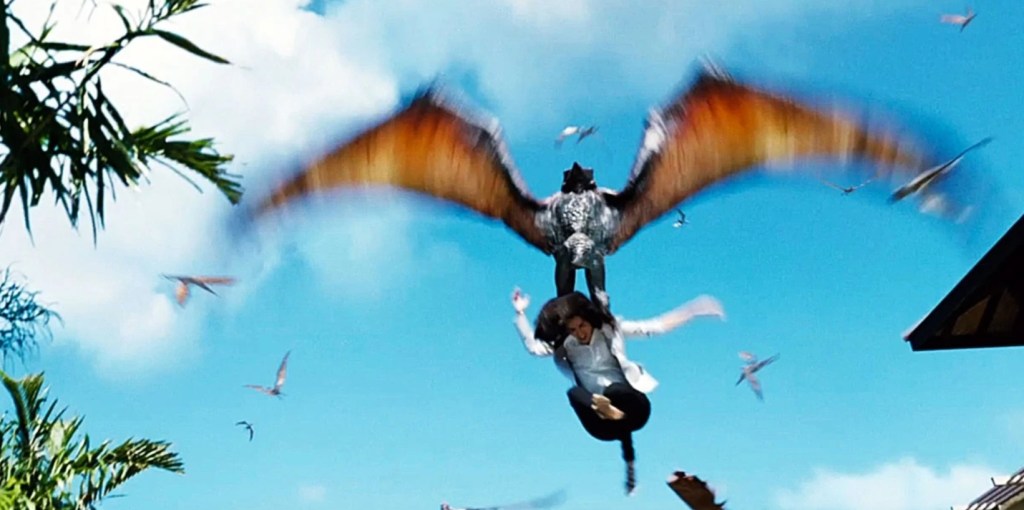 However, if you wanna dig a little deeper and really make the moment even worse; sharp eared viewers can pick out the reason she’s on her phone, which is that she’s making calls about her engagement and is most likely trying to plan her upcoming wedding – so her payment for trying to organise the happiest day of her life is to look after a couple of bratty kids, get bad-touched by a flying screech-lizard and then abruptly end her days suffocating/drowning somewhere in the thorax region of a conscience-free, sea monster.