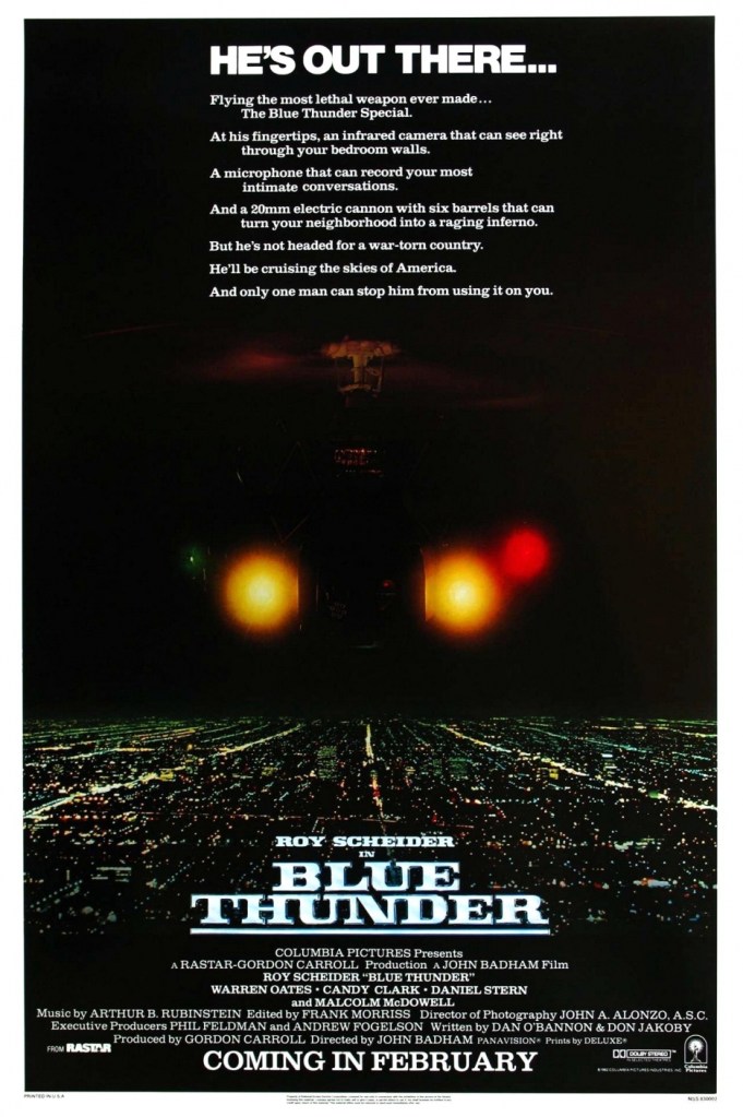 However, in the interest of fairness, I give to you Blue Thunder, an action thriller from Saturday Night Fever director John Badham and co-writer Dan O’Bannon that gives you all the twirling rotors and nauseating banking you can stomach and more…