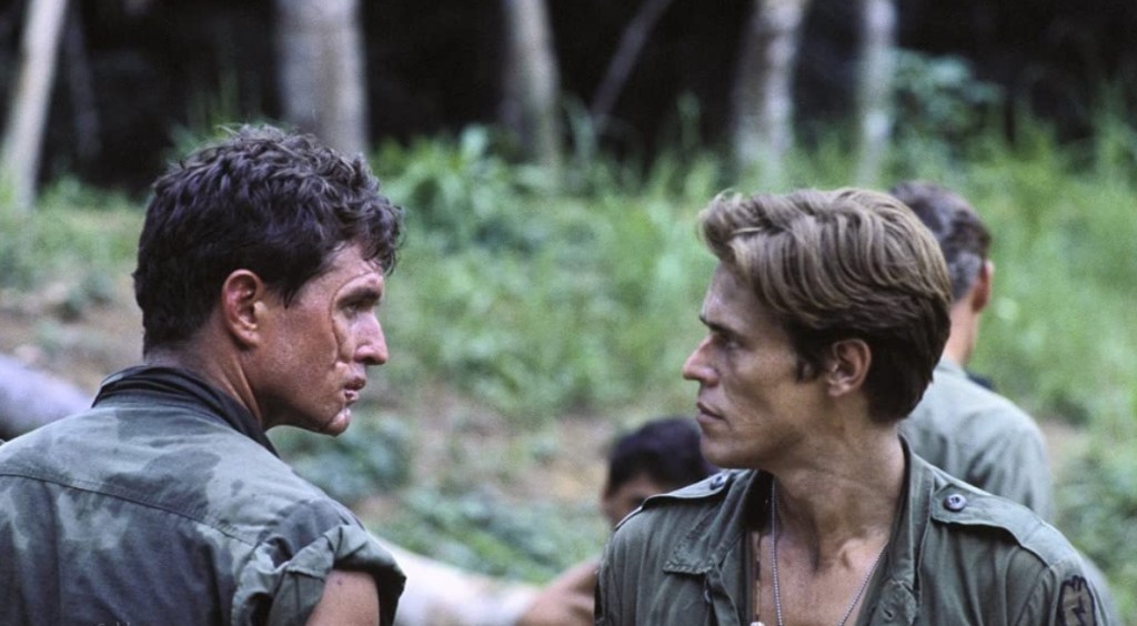 Its 1967 and wide-eyed volunteer Chris Taylor has just landed near the Cambodian border in South Vietnam to start his year long tour of duty and is already realising he’s made a horrible mistake. He is assigned to the 25th Infantry Division which is supposed to be run by the inexperienced and massively ineffectual Lieutenant Wolfe, but in actuality the Platoon refers to it’s two, far more experienced sergeants, the cold, brutal Barnes and the idealistic Elias, meaning that the entire company is made up of two factions who follow each man and their respective ideals while generally co-existing.