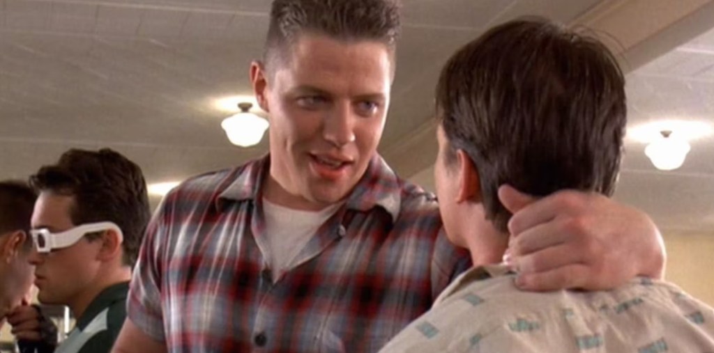 Some much needed hope appears on the horizon on the shape of the 1955 version of Doc Brown who, with Marty’s knowledge of the future, realise that a lightning bolt is due to strike the clock tower in the town square in week’s time which will recharge the Delorean, but only if they time it with split second precision. So with a deadline in place, Marty has to get his parents to date, avoid the fists of local bully Biff Tannen and get his ass back to the future while causing as little damage to the timeline as possible.