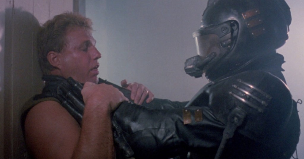 However, among the all the exploding huts (a Mattei speciality), pipe smoking commando’s and flailing Filipino stuntmen, the heroes realise that something inhuman is tracking them through the steaming jungle with the intent of making them as dead as possible and it unsurprisingly has links to the suspicious Mascher. This thing is an android killing machine dubbed the Omega-1 that is designed to be, and I quote, a “perfect, ultimate” weapon despite looking like a dude in plastic armour and a crash helmet.