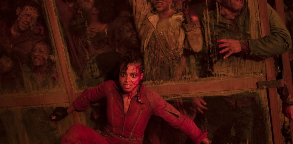 Adding to this is the performance of Paola Núñez as 2022’s head of Umbrella, Evelyn Marcus which, while being an ok performance, is hardly subtle as she give the character such an oversized injection of “frosty villain” that her constant unblinking stare is a titanic read flag it makes the show’s approach to Umbrella somewhat confusing. We know that it’s evil, not just because of all the other media we’ve experienced over the years, but because the 2036 timeline drills it into us endlessly; now, this all very well and good, but it means that that the 2022 plotline is essentially playing catch up to what we already know and it’s nowhere near gripping enough to make us give much of a shit about the journey.