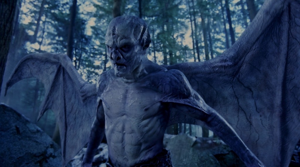 Set immediately after the events after the first movie, Death Dealer Selene, a soldier in the centuries old scrap between Vampires and Lycans (read: werewolves), is on the run with her vampire/werewolf hybrid lover, Michael, after killing the duplicitous Viktor, the head of Selene’s order. However, with events leaving two of the three elder vampires Deader than polyester slacks, it has become time to wake Markus, the last one left to lead the vamps in this, their time of dire need. However, due to some carelessly shed Lycan blood that has trickled down into his mouth while he hibernated, Markus awakes as another hybrid who exercises his exaggerated lust for bloodletting with some handy, mutilating wings he now sports.