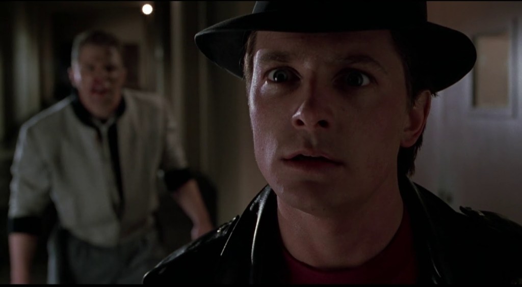 The entire cast seems to be having a ball and Fox in particular is obviously getting a kick out of playing his own dopey kids and a washed up version of himself (who hangs around with a middle aged Flea, for some reason) and Thomas F. Wilson’s villainous Biff reaches suprisingly dark heights.