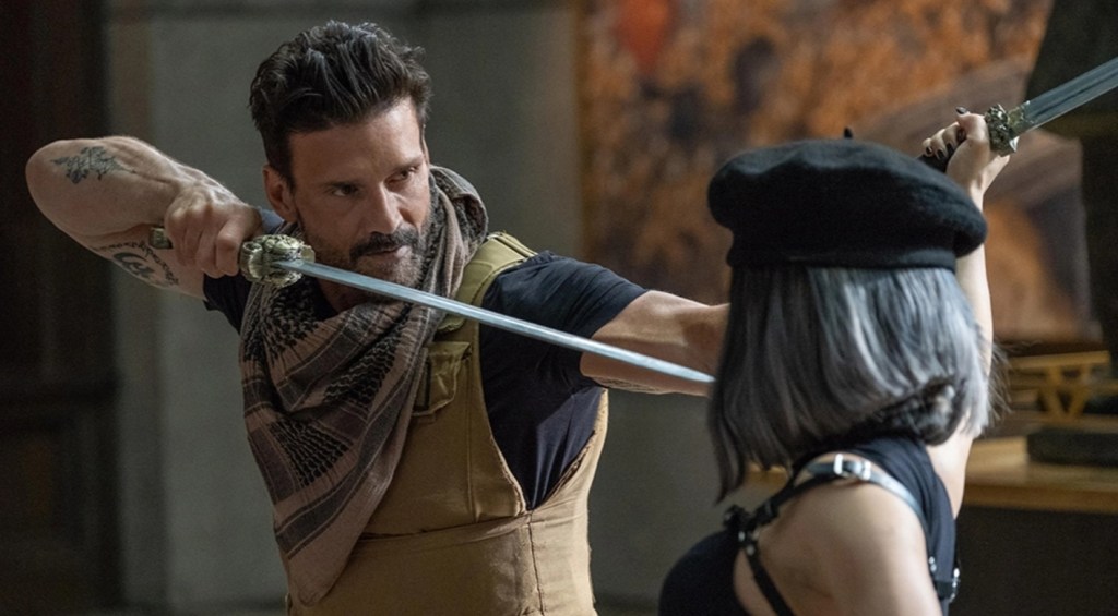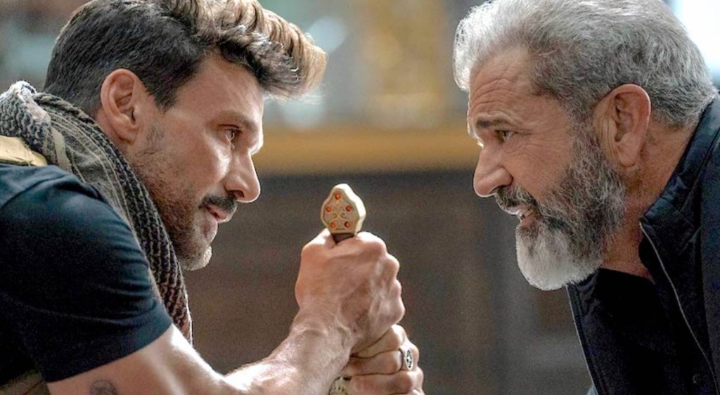 If there’s a slight glitch with Boss Level, is that the movie covers Toy’s plight so well, you kind of want the story to give us more of an insight to some of the characters that drift around his bloody orbit. Take Michelle Yeoh’s glorified cameo as a sword expert, or Ken Jeong typically mouthy restraint owner, or any of the assasins, who could have benefited from the kind of stylish ensemble Carnahan displayed in Smokin’ Aces rather than the occasional running gag. Similarly, Mel Gibson’s loquacious villain doesn’t get to perform some of the grand standing, eyeball rolling we know the actor is capable of, but, on the other hand, it’s tough to complain when Frank Grillo is given so much space to work his awesome, grizzled magic.