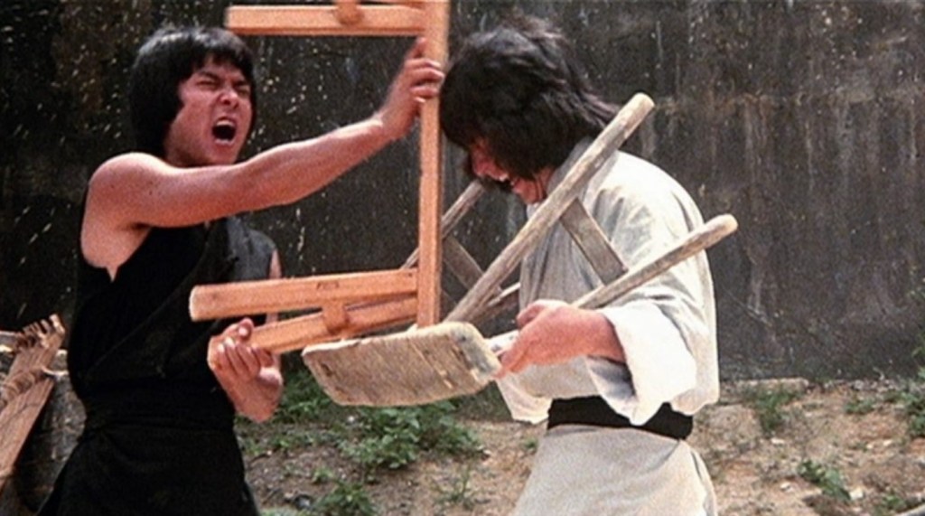 Of course, Chan doesn’t do this entirely on his own and has future collaborator and martial arts super star in his own right, Yuen Biao (Project A, Wheels On Meals), is on hand for a blistering, bench assisted sparring session while Shih Kien (best known as the villainous, claw handed Han from Enter The Dragon) plays the long suffering police chief.