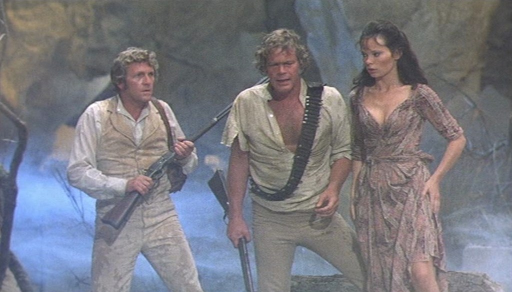 It’s quite derivative too, with a lot of plot points simply cut and pasted over from Connor’s earlier extravaganzas. The plot point that some of our characters may not entirely be trustworthy stings of the shaky truce that’s made with the Germans in Land That Time Forgot while the Mogdaan scene isn’t that different from the plesiosaur attack from the same movie. Additionally, the very Burroughs-style concept of mind controlling, inhuman overseers also is cheekily shifted wholesale over from At The Earth’s Core and it gives an already unsteady story a distinct second-hand feel.