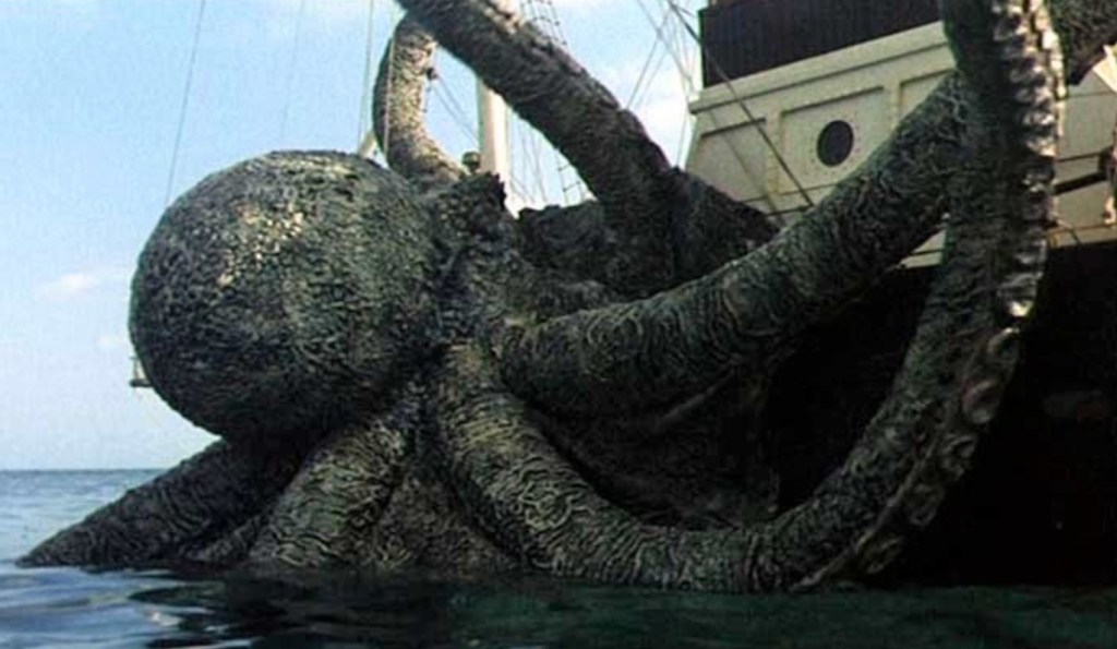 Far out to sea lies the vessel the Texas Rose which has been chartered by Professor Charles Aitken and his father to test a diving bell designed by charismatic engineer Greg Collinson. However, unbeknownst to Greg and the ship’s obviously untrustworthy crew (I wouldn’t even trust them to get me a sodding coffee), the two boffins are searching for the existence of the fabled lost city of Atlantis and within 20 minutes of the undersea contraption hitting seawater, Greg and Charles has not only been attacked by a sea monster, but they manage to find an Atlantian relic – talk about convenient. However, after slapping their eyes on the solid gold pillar, those dodgy crewmen start to get mutiny on their minds, but are thwarted when a giant, super-pissed octopus, flops on deck and drags everyone to the depths of the ocean.