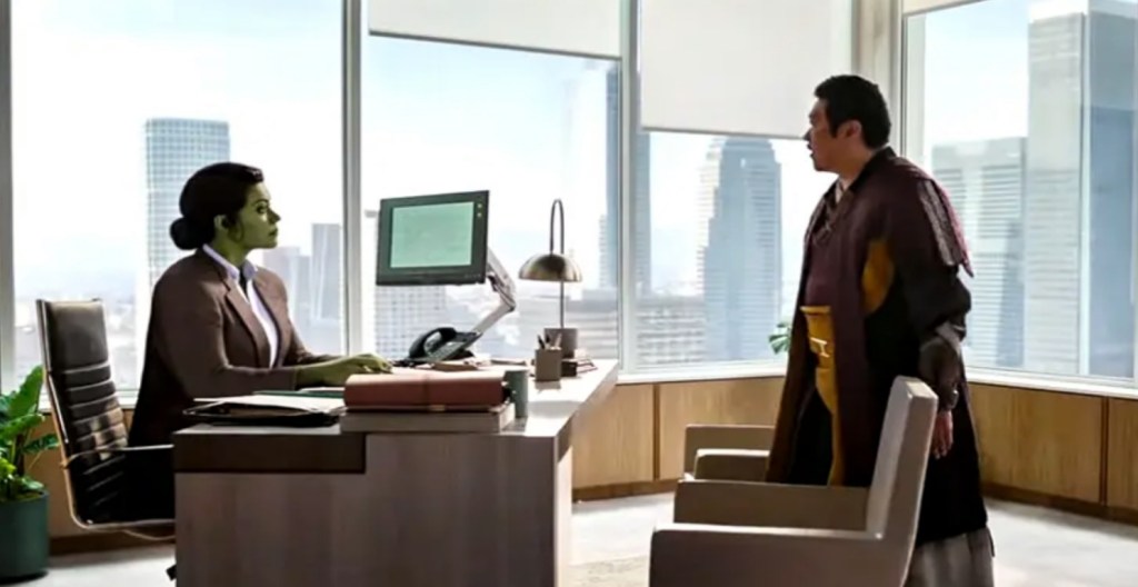So, as we head into episode three of Marvel’s super-powered comedy lawyer show (never going to get tired of typing that), it’s now apparent that the series has pretty much settled into what it’s going to be from here on in and that’s a scrappy, witty, case of the week format that alternates wildly between irreverent barbs at what women have to tolerate, goofy farce and typical MCU world building with the deliberate awkwardness that Jennifer Walters herself currently finds whole shifting between her different forms. To be honest, I’m here for the chaos and I’m currently finding it rather refreshing after some of the other Disney+ shows settle on a more, A to B plot format.