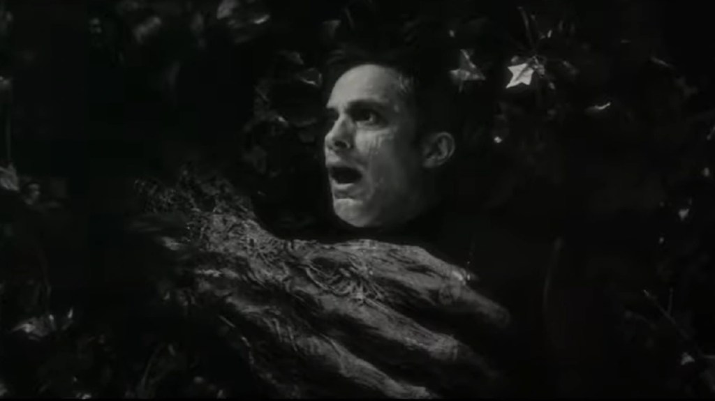 Shot in a glossy black and white and dotted with the occasional “cigarette burn” in the top right corner, Michael Giacchino has gone full horror nerd when bringing us this contained tale, giving the usual Marvel fanfare an incredible 1930’s overhaul and loading tons of enticing easter eggs everywhere (there’s a mural featuring a comic accurate Gorr The God Butcher fighting Saxons and I’m fairly certain I spotted an etching of a Wendigo). As a Universal Monster nut, I couldn’t be happier, especially when the design of the titular lycanthope leans to more Jack Pierce than Rick Baker, but for all the cool references, what makes Werewolf By Night work so well is the two main characters and a third you might not suspect.