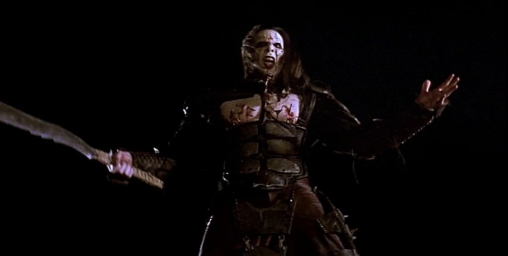And yet, this is Carpenter and despite its many faults, it’s still watchable on a purely “bang bang” level despite the fact that if you push past the leaden dialogue (“Don’t you believe in anything?”, “I believe in staying alive.”), cheap effects and muddy storytelling, there’s some interesting things going on.