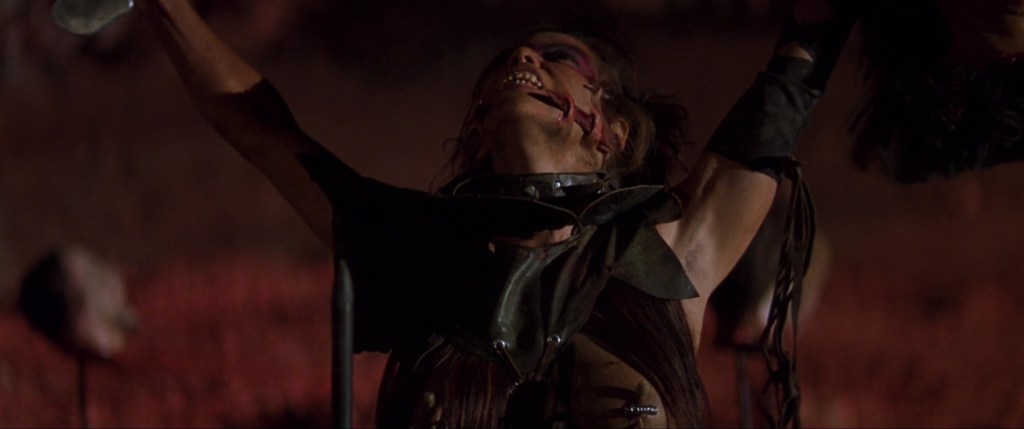Through various survivors, each armed with flashbacks of of their own (this film’s a veritable flashback jackpot) the law enforcers eventually piece together that the miners opened a chamber that released the spirits of the native Martians who dwelt here before who then proceeded to possesses any human they can find in order to turn them into a feral, self-mutilating army who very much want to violently take their planet back.