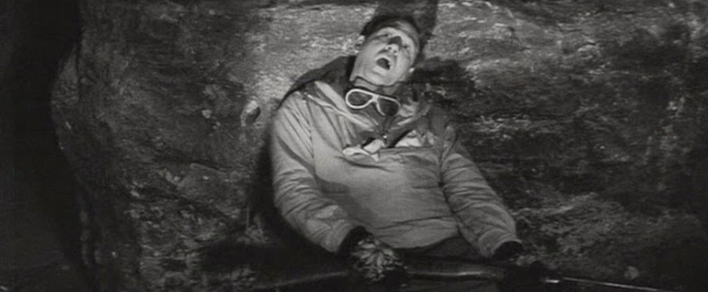 Setting ideologies against each other while trapped in a hostile location with shadowy beauties howling in the night like rutting foxes, it takes the usual pattern of 50’s American sci-fi, but adds a calm, level head to the usual anti-communist hysteria and instead portrays its elusive title stars as a more gentle, misunderstood being rather than an out and out alien threat or a missing link trying to protect its habitat from slack jawed gawkers. In fact, when we do get a reveal, the Yeti are revealed to be wizened beings with a Doc Emmett Brown frizz who are simply waiting out the time until humans finally kill ourselves for good and then move in like Earth is a rent controlled apartment.