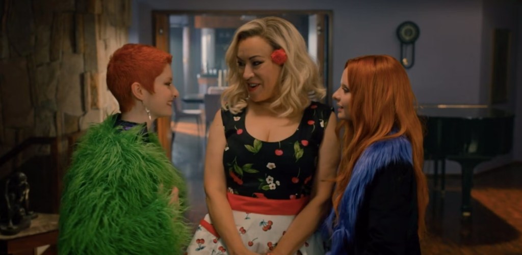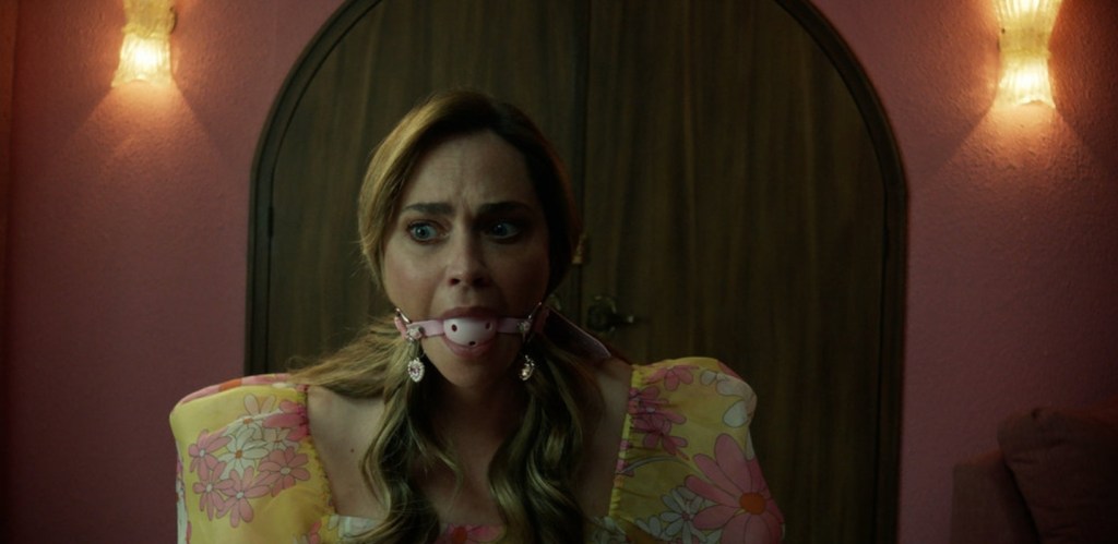 Sitting out the episode as more of a host, Chucky introduces us to an episode outside the oppressive walls of the School of the Incarnate Lord and instead focuses fully on the deranged lifestyle of Tiffany Valentine. For those unfamiliar with her fabulously complex back story; tough shit because it’s way too complicated to cover here – but we join her after being visited by her non-binary twins Glen and Glenda who have no idea of they’re batshit past or the fact that their int really Hollywood actress Jennifer Tilly. Relationships have been a little tense between Tiffany and her kids and matters are made all the more awkward when she finds out that they’ve decided to throw a surprise birthday bash for her and gave invited various Hollywood personalities to attend. In the group is Gina Gershon and Joe Pantentolio (her co-stars from the movie Bound), Desperate Housewives actress Sutton Stracke and Jennifer’s estraged sister, Meg Tilly and everyone is immediately offended by Jeeves, the boorish, makeshift butler Tiffany has hired for the evening to guard the limbless Nica who is still being held captive on the premises.