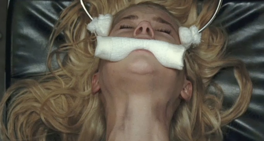 However, she’d better get a move on because her fellow patients are stubbonly dropping like flies, be it via violent misuse of a transorbital lobotomy, reckless operating of an electro shock device or just a good, old fashioned throat slashing and if she doesn’t put all the pieces together, she’ll be next.