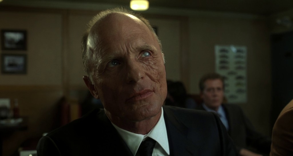 Giving slightly more showy performances are the “villains” of the piece, with Ed Harris pumping out so many bad vibes as his scar-faced goon he barely has to speak while an Oscar nom scoring William Hurt is nicely verbose as a crime boss who wants this mess cleaned up asap.