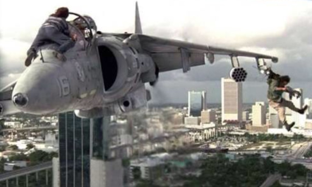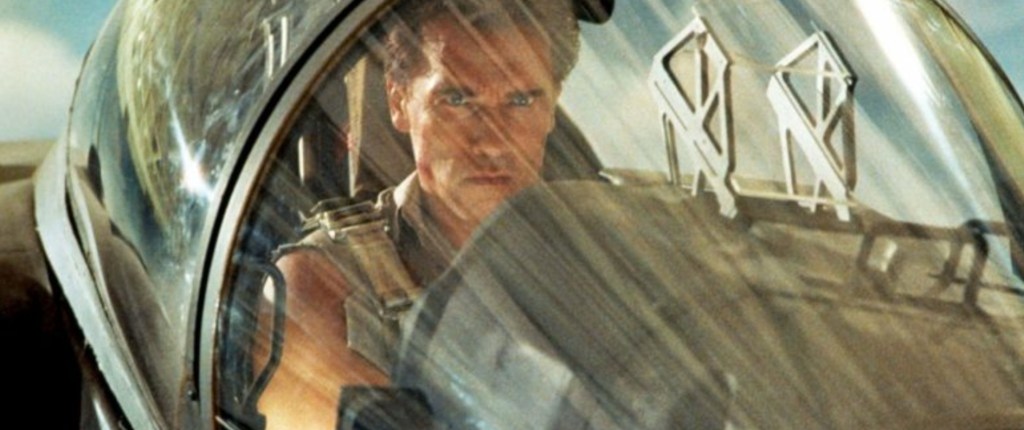 And then there’s those action beats and to steal a Bondian saying, nobody does it better than Cameron. The scale of the thing is crazy-big as the director orchestrates mind-boggling stunts that dwarfs even the cunch and smash of Terminator 2. Goggle in awe as a truck vainly tries to outrun a missile strike as it obliterates the bridge in its wake; let your jaw drop as Arnie tears up a suspiciously clean public restroom in a toilet-based brawl that pre-dates the arm-reloading one from Mission: Impossible: Fallout; choke on the heart that’s in your mouth as the flick stages a stunning limousine/helicopter rescue and simply lose your fucking mind as Cameron shoots an entire action sequence as Tasker pilots a AV-8B Harrier jet above the city while simultaneously fight off Art Malick’s charismatic villain while trying to save his daughter (a near unrecognizable Eliza Dushku). It’s stomping stuff and more than enough to paper over those earlier cracks and yet despite all of its legitimate awesomeness, there’s a sense that Cameron’s switch to broad humour may have provided one of his less accomplished endeavors, but even when the director is having a bit of a giggle (only Cameron could have a laugh to the cost of $100 million), he’s still light years ahead on his contemporaries.