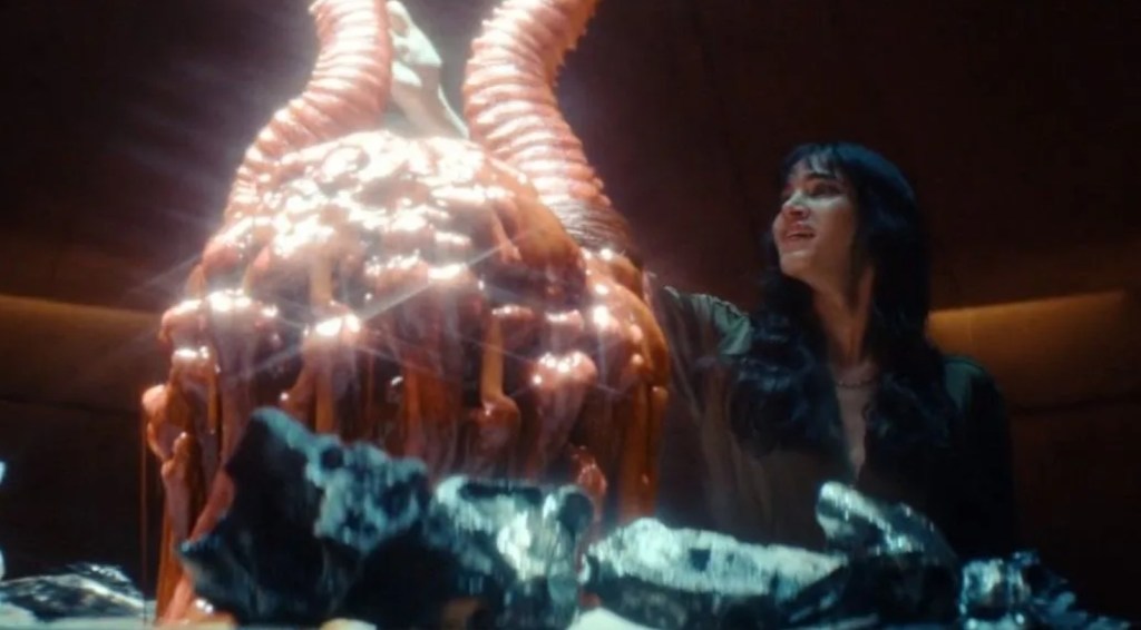 For those unaware or immune to Panos Cosmatos’ distinct style, the best way to describe The Viewing is as if 1982 David Cronenberg and 2022 David Cronenberg somehow merged thanks to a tear in space and time and their fused consciousness promptly buggered off to possess Nicolas Winding Refn to make a fucked up tale of Lovecraftian goobledy-gook. Less a traditional story with a decisive end and more of an edgy outpouring of drug altered tone, you won’t why anything is going on, but then in Cosmatos’ world, why is a red-headed stepchild compared to what.