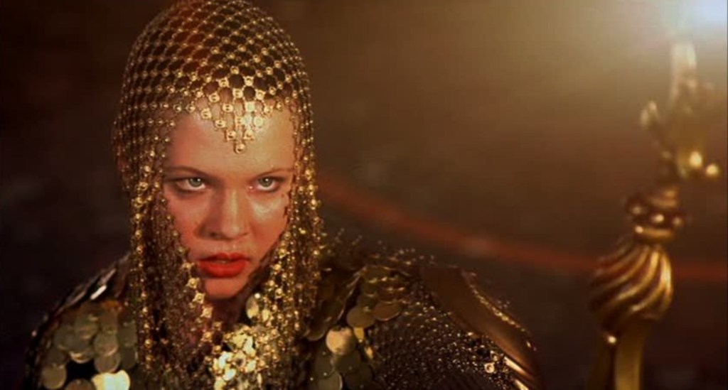 Among the flailing performances, acouple of the actors manage to his the right note; Jeremy Irons attempt to make every line as cartoonishly villainous as he can isn’t exactly logical, but it sure is funny to watch and Bruce Payne delivers a similar serving of ham as his bald flunky, choosing to grimace through blue lipstick as his prey gets away instead of actually breaking into a run and chasing them. There’s even some weirdly spot on cameos from arch masters of camp, Richard O’Brian and Tom Baker, who with limited screentime manage to be the most convincing things in the film.