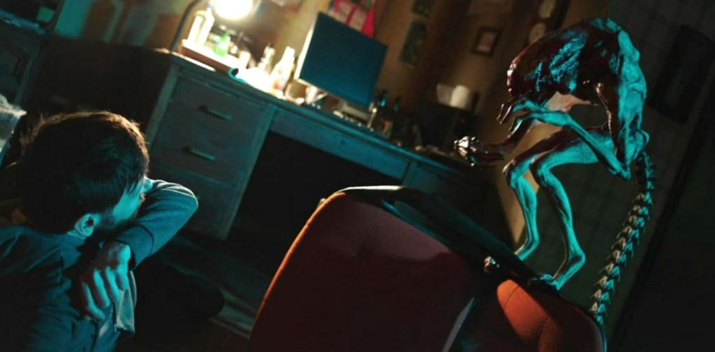 Almost a double header between Qualls and a puppet that looks like someone skinned the chestburster from Alien, the episode (written by horror veteran David J. Schow) feels spiritually and tonally more like something you’d get from Monsters, the Romero produced 80’s show that followed up Tales From The Darkside that also boasted edgy laughs to go with its creature-of-the-week format. Breaking the fourth wall as gleefully as She-Hulk and Deadpool fighting over a wrecking ball, Clark delivers the majority of his lines either directly to camera or in the form of a voice over which makes his depressing tale all the more engaging – but the real star of the show is the perversely cute Bob. Fiercely loyal while chomping through a helping of popcorn (watch him impatiently strain in his seat when Clark obscures the TV while refilling bowl), Bob may obviously be a rather jerky puppet, but he’s still an endearing little fucker, even when bringing home body parts like a cat bringing its owner a dead mouse. The tale has some nifty gore too as Clark struggles to dispose of the various “gifts” Bob dutifully brings into the house, be it crushing severed heads with a hammer or cramming a bag of entrails down the waste disposal chute with predictably splattery results.