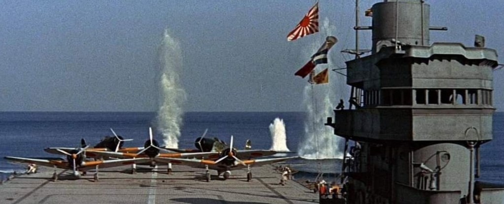 As so, on June 4th, the Battle Of Midway begins which sees attacks, feints and counter attacks ensue as pilots fill the sky with fighter planes in order to play a giant, deadly game of battleship with real lives in the balance. As flaming planes slam into the Pacific, the Americans and the Japanese play a deadly game of tag as each army struggles to sink each the other’s carriers first in order to shift the tide of the entire war.