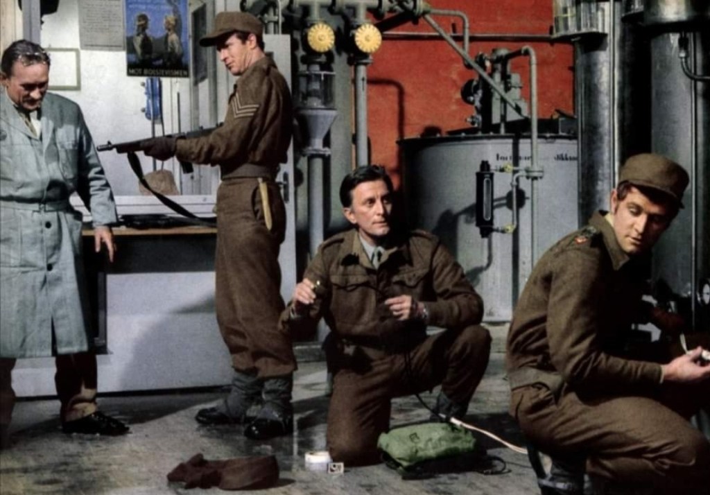 However, most of the time the missions are treated in a fairly pedestrian manner as the good guys abseil down mountains, infiltrate the plant and bomb the place without breaking much of sweat. Similarly, Karl’s subsequent arrest by the Nazis is also tackled in a weirdly flat manner, never really explaining how a physics professor can out draw a bunch of trained soldiers and escape a fusilade of machine gun fire without any noticable train whatsoever (being played by Kirk Douglas works wonders for the cardio, I guess). And yet, the movie finally realises that it better had inject some drama into proceedings and gives us some of that tension we’ve all been eager waiting for as our heroes realise that if they’re really going to halt the delivery of the heavy water, they’re going to have to intercept it on its journey, targeting it as it’s loaded onto a civilian ferry. However, even though the explosives are met with the typical minimal resistance (there is a war going on, right?), the real battle is with Rolf’s conscience at the ferry is loaded with innocent children as well as scowling enemy troops. The scenes where our hero boards the wired-up ferry with the clock ticking in order to get the kids ready for the explosion under the very noses of the Nazis finally has you edging to the edge of your seat as the movie belatedly realises the stakes involved.