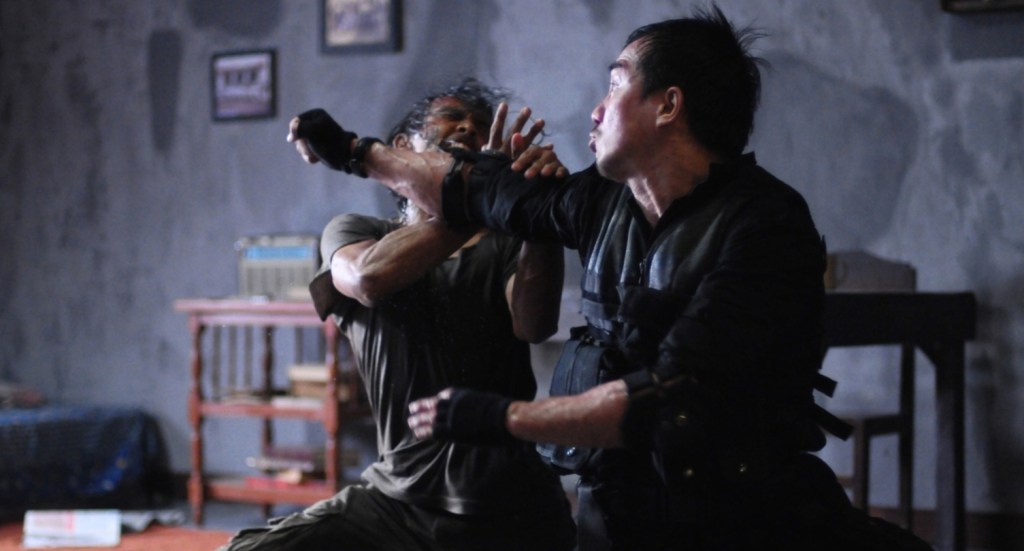 There’s an argument to be made that pencak silat maybe isn’t as flashy and exuberant as, say, the muay thai seen in Ong-Bak, but the beleaguered characters don’t have time to run up a wall and drive an elbow into the skull of an enemy when there’s so little room to manoeuvre in the dank corridors of the apartment building. It all accumulates with a magnificent Phantom Menace-style two-on-one smackdown that’s sees Uwais and his character’s brother (Donny Alamsyah) square off with the movie’s most fascinating character, Mad Dog, a shaggy-haired, shorty who makes up for his lack of size with a deranged determination as he confidently fights off his multiple opponents simply because he wants to see if he can.