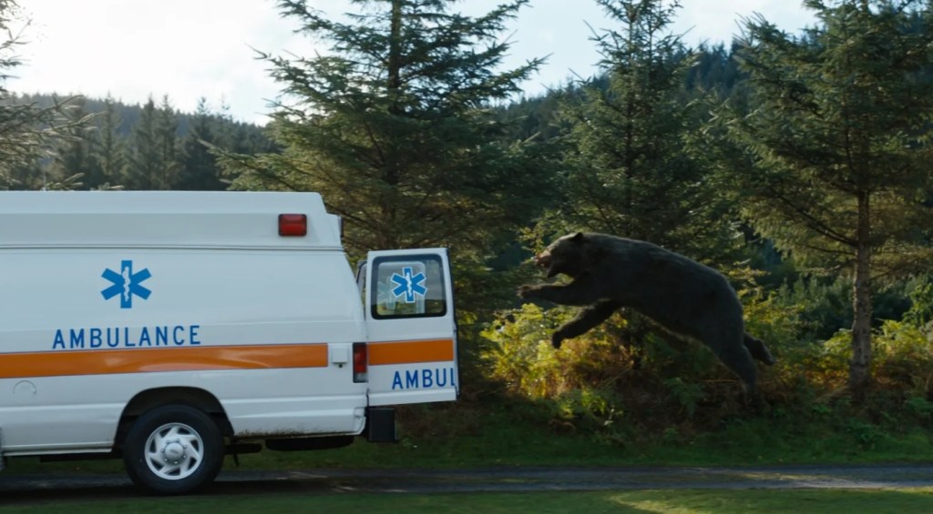 That’s not to say that crazy doesn’t happen – its not called Codine Bear – but in an endearing quirk of fate, it turns out Elizabeth Banks is really good at staging exaggerated, sustained animal attack sequences that nail the deranged tone the movie is trying to achieve perfectly. Be it her judicious usage of graphic gore (partially severed wrists and blown out skulls are all on parade here), or the fact that each bear encounter is nicely varied, they all maintain a solid balance of drawing out dark chuckles and genuine intimidation as the bear takes a break from inhaling and starts inpaling. The CGI on the beast is great and the knockout scene where it chases down an Ambulance full of screaming people is absolutely cracking – as is a moment when it climbs a tree in order to try and get its claws into Modern Family’s Jessie Tyler Ferguson – but much like the hopelessly addicted titular animal, you want more.