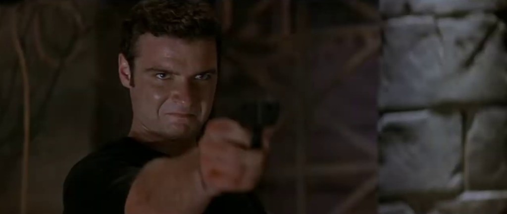 After hisderanged stab at revenge by ways of crafting a real life slasher movie falls apart, psycho boyfriend Billy Loomis flicks that fucking fringe out of his eyes for the millionth time and stalks wiley final girl Sidney Prescott as she mocks him on the phone with his own voice changer. His guard well and truly down, Sid manages to get the drop on him by exploding from the basement with a Ghostface on and takes him out of the equation by using an umbrella in ways that would make the Kingsman boys flinch. However, after accomplice Stu joins the fray and take a television set to the face for his troubles, Billy gets the upper hand and is about to finish off his relationship for good when career bitch/last second saviour Gail Weathers slows Loomis’ roll with a well placed bullet. All that’s left to do is for Sydney to take the gun and thwart her very ex-boyfriend’s final scare with a thunderous head shot that swaps out girl power for girl stopping power.