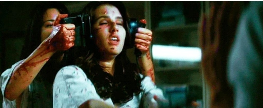 After smartly dispatching her accomplice with a treacherous bullet, Salt and Sid engage in a cat and mouse brawl that rages all over the stage area of the college – however, after a bug-eyed mama Loomis manages to finally pin down her victim to be, they are interrupted by a confused Cotton Weary who holds both at gunpoint. Salt tries to convince the man who originally went to jail for the murder of Sid’s number to kill the teen who fingered him for the crime, but after Prescott agrees to do the interview Cotton’s been bugging her for, he plugs dangerous Debbie instead. So far, so Scream – but what makes the annihilation of the second movie’s string puller so memorable is that after Mickey pops up for an inevitable final scare, both Sidney, Gail Weathers and Cotton mull over Salt’s body, anxious that she’s going to the same. However, before they have a chance to find out, Sid steps up and cold bloodedly lodges a hollow point right between Debbie’s eyes, both making the question an awesomely moot point and showing that our heroine has nicely worked her way up the slasher learning curve.