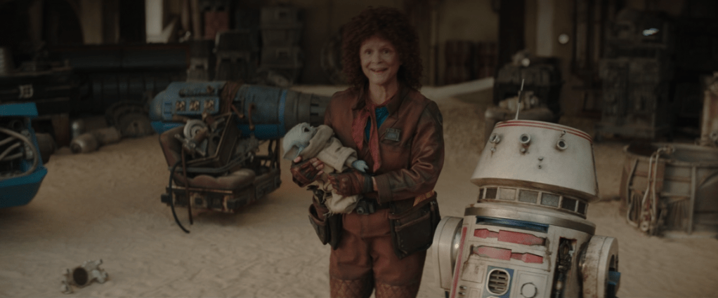 This sets us up for Grogu to get his first genuine action scene. It’s amazing what the creators can get out of this little fella, which is still allegedly more puppet than CGI. He’s sneaking about, doing flips, racing about in his pod, and throwing a “morlock” with the force. Grogu is now more than a little green bundle that needs protecting and this is most solo screen time that he has had. He’s even flying Din’s starfighter with the aid R5. It’s amazing that this character has grown to more than just an advert for merchandise.