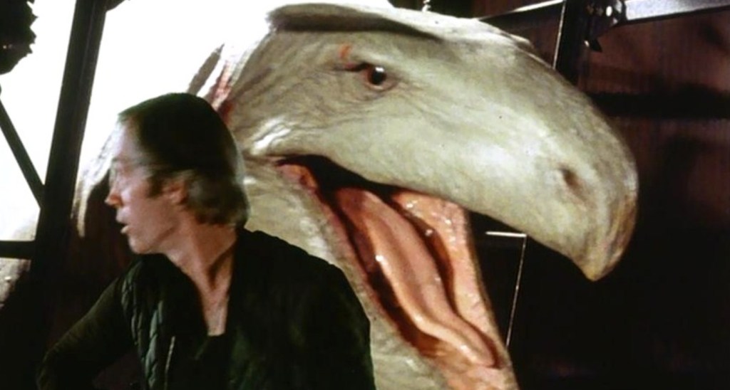 Elsewhere, we get some fittingly crusty support from exploitation gods David Caradine and Richard Rowndtree as the two cops stuck between a giant carnivorous lizard and its devotee who is skinning willing victims alive in its name. Both are great, but inching ahead on points is Caradine’s unflappable Shepard who ups his cool motherfucker credentials by leading the investigation and settling matters in the rousing finale as he dons some black leather gloves and leads an army of cops to try and bring Quetzalcoatl down.