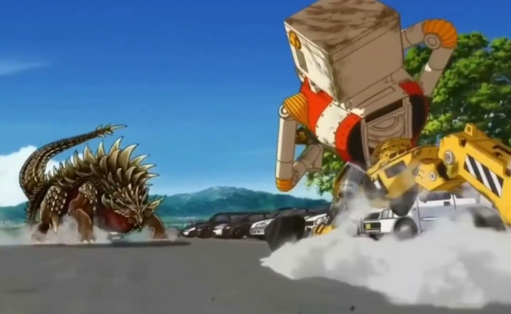 This however isn’t going to help Gorõ, whose attempts to batter the crap out of the resilient Anguirus results in Jet Jaguar losing his head. However, Yun manages to upload his A.I. into the robot in order to continue the fight and tries to find a way past the spikey Kaiju’s time warping defense mechanism in a way that might put him in mortal danger.
