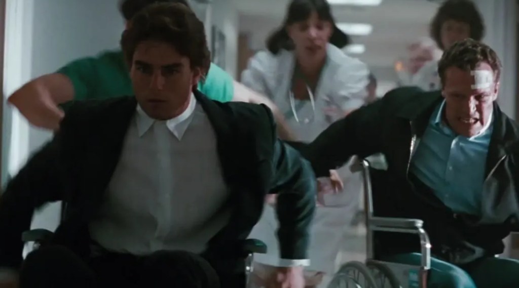 While Cruise and Kidman struggle to manufacture any type of romantic chemistry (somewhat alarming when you consider they got freakin’ married), everyone else merely coasts by, content to earn a paycheck with their character actor credentials – Robert Duvall, Michael Rooker, Randy Quaid, Cary Elewes and John C. Reilly all willingly lean into the 90’s cheese as the lightning-fast tone of the piece blows past them like they wasn’t even there. The movie contains more than it’s fair share of ludicrous scenes, be it Cole assuming Claire is a stripper only dressed as a Neurologist and forcing her to touch his dick, or the numerous moments where Cole and Rowdy sort out their differences by racing everything from rental cars to wheelchairs; but the relentless pace of the film renders everything as empty as Cole’s reserves of modesty.