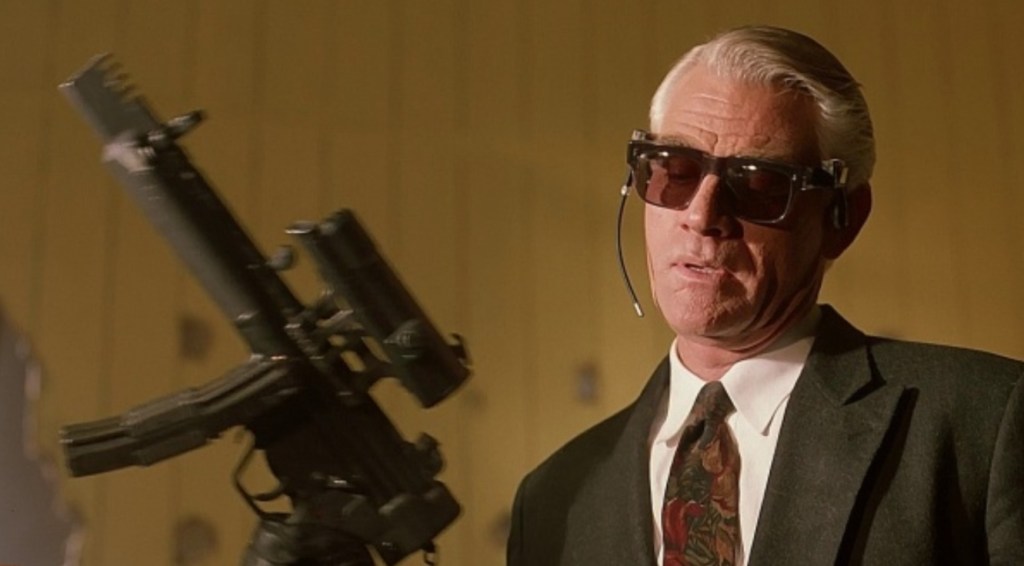 Alongside some rubbery android battle damage effects and a primitive stop motion robot who engages Gruner some final act fisticuffs, Nemesis manages to almost balance its crappy nature with some strong, so bad it’s good vibes, but arguably the best thing about the film is that there’s a very good chance that Pyun actually managed to influence some major players with his minor league extravaganza. Tim Thomerson’s villainous Farnsworth, with his slicked back hair, tailored suit and shades could very well be an ancestor of The Matrix’s Agent Smith (there’s no way the Cyberpunk mad Wachowski’s haven’t seen it) and some of the weird droid tricks (one has a face that splits open to reveal a gun barrel) have subsequently popped up in an anime or two.