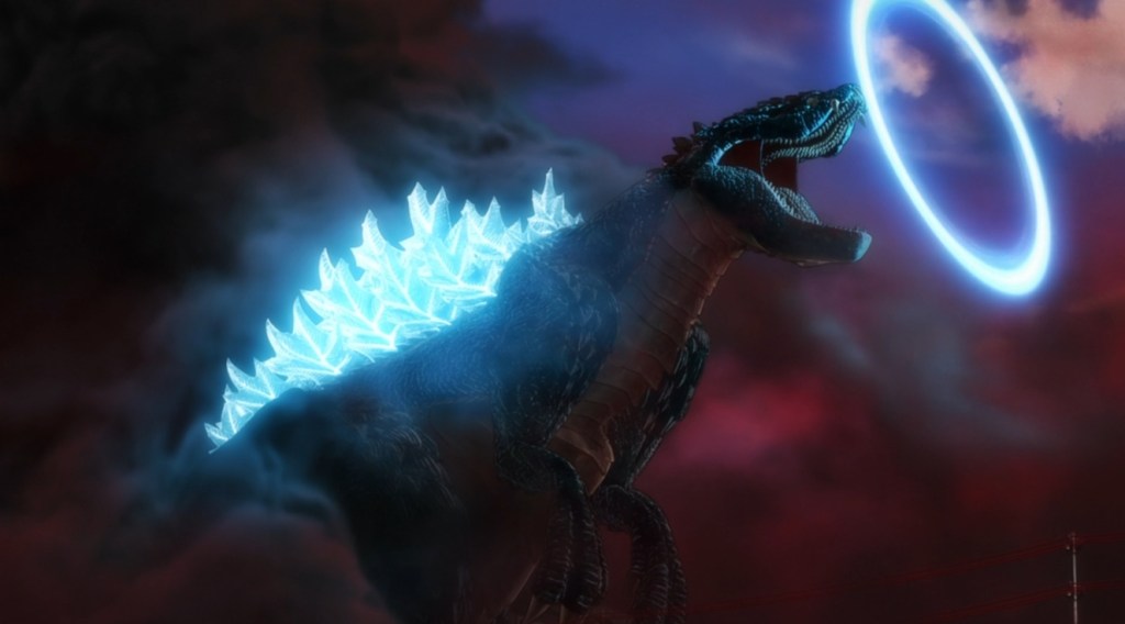 Now, as I stated before, I’m not one of those overexcited fans that gets upset when a Godzilla property has decided to play “hide the Kaiju” with the King of the Monsters before, after all, giving Big G the Jaws treatment is great for building up suspense, but Singular Point seems to have a real issue matching the antics of its oversized star to the rest of the action. The last few episodes have contained Godzilla’s gradual emergence primarily in the pre-credits sequence which has succeeded in isolating the Kaiju from the rest of the show despite the fact that he’s blatantly the key to everything. Now, while I’d argue that while Singular Point will eventually have more Godzilla action that the entire Netflix anime trilogy combined, the fact that the show runners have kept the handbrake on full when delivering its star has now gotten frustrating.