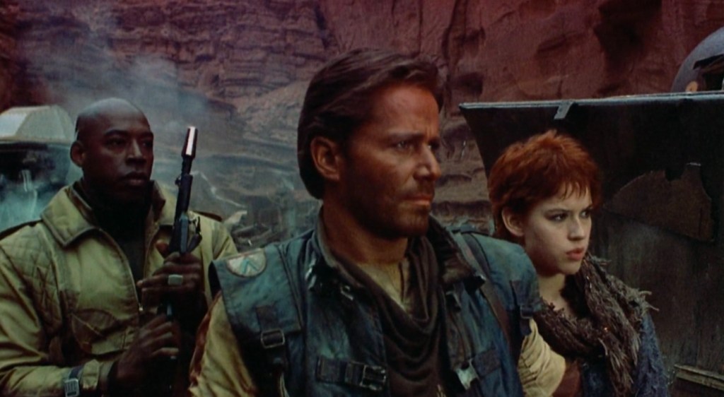 However, salvation comes in the form of Molly Ringwald (yes, that Molly Ringwald) who plays the excruciatingly annoying Niki and for years reviews have wished that she hadn’t ventured out into space and simply stayed back in Shermer, Illinois where she belonged. However, time has been ridiculously kind to this aspect of the story as the plot point of a grouchy adventure reluctantly taking parental duties of an outlandish precocious waif is all the rage now thanks to The Mandolorian and The Last Of Us and it truly refreshing that Niki is the only female in the cast who isn’t treated like a sex object.
