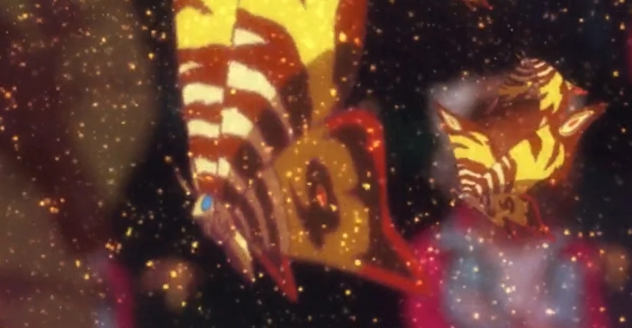 The Otaki team are still waiting for Jet Jaguar to recover from its massive upgrade, but the going is slow as the large, grinning robot still has the reasoning (and voice) of Lamb Chop from that old kids program. However, their journey toward Godzilla is temporary hampered by the strange sight of many, glittering moths, that flit around them as if to signify some sort of portent. Not only does Yun manage to obtain and Orthogonal Diagonalyzer, but he figures out the coordinates he’s been given will eventually match Godzilla’s location once he grows to a certain size.