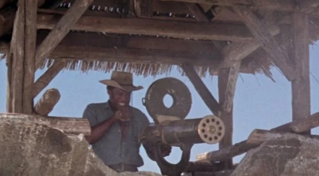 So yes, once again, Mexicans are bring oppressed – this time by a revolution quashing Colonal – and so this third attempt follows the two previous movie virtually beat for beat with only minimal details being even remotely different, however, while Return ranked up a fairly forgettable band of troubled heroes, Guns collection of emotionally damaged reprobates are a far more diverse bunch. The exception to the rule is Scott Thomas’ wheezing P.J., a man who not only has a life threatening illness and a romantic arc with a girl from the village but still manages to make no impact on the film whatsoever.